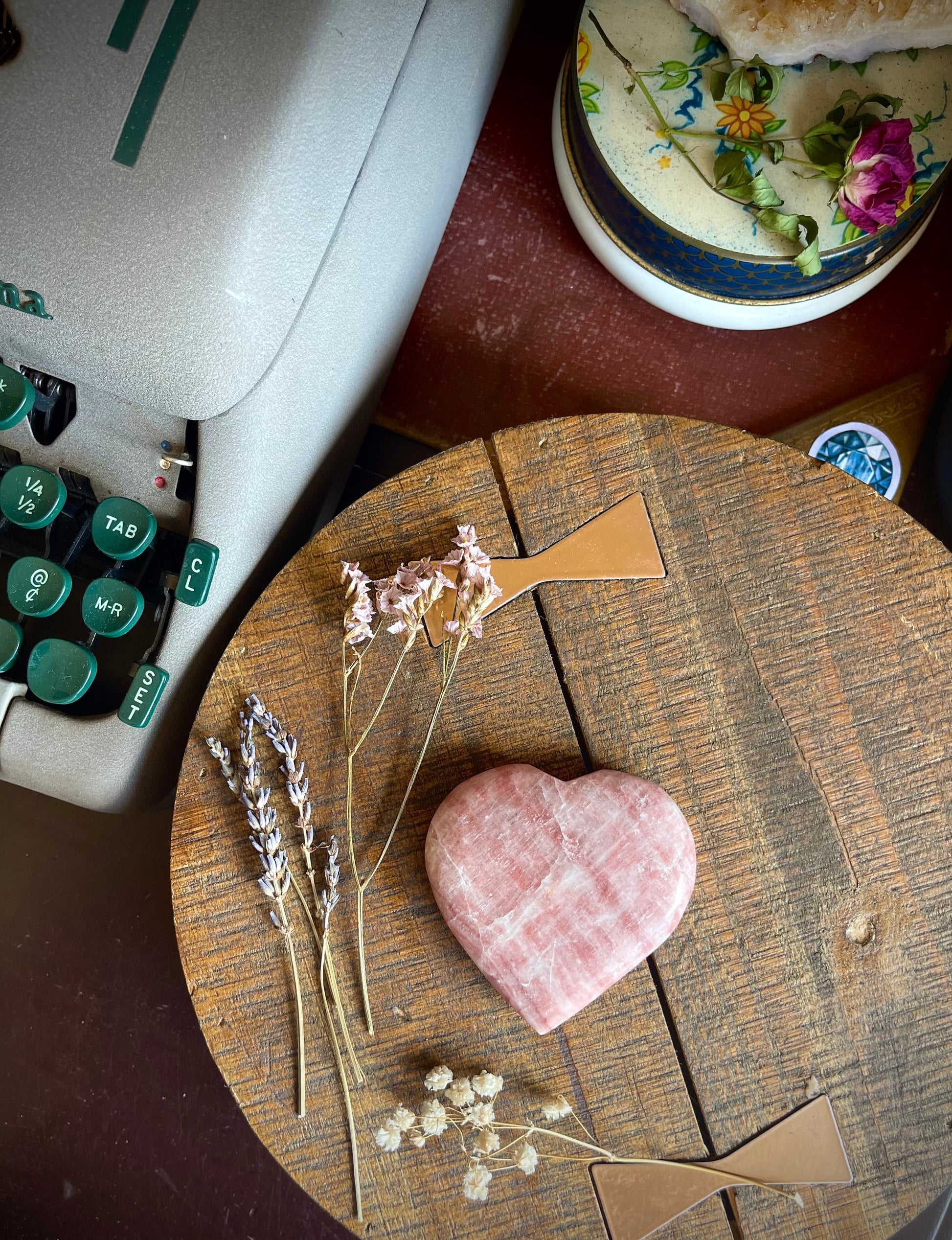 the shape of a crystal absolutely matters. i bet you can guess the energy of this shape! this heart-shaped rose calcite is soft & beautiful. this heart-shaped heart chakra crystal is packed with incredible healing energy.