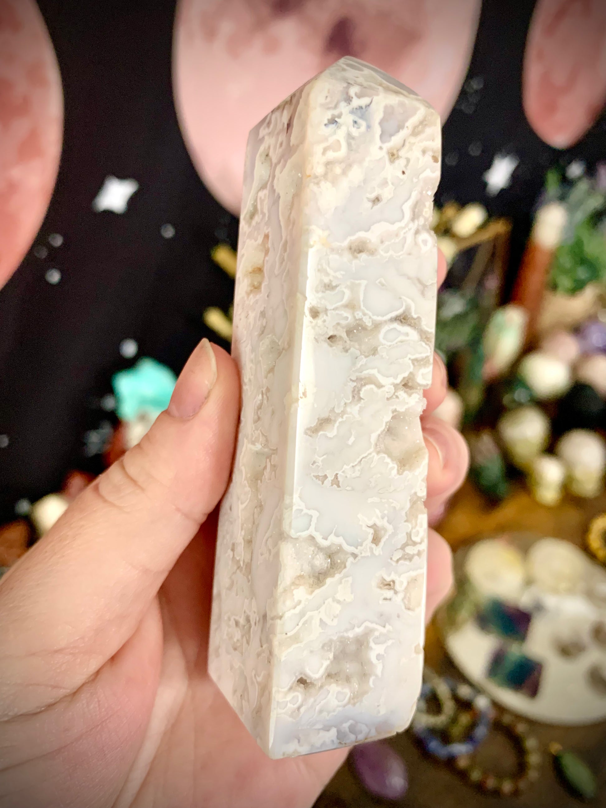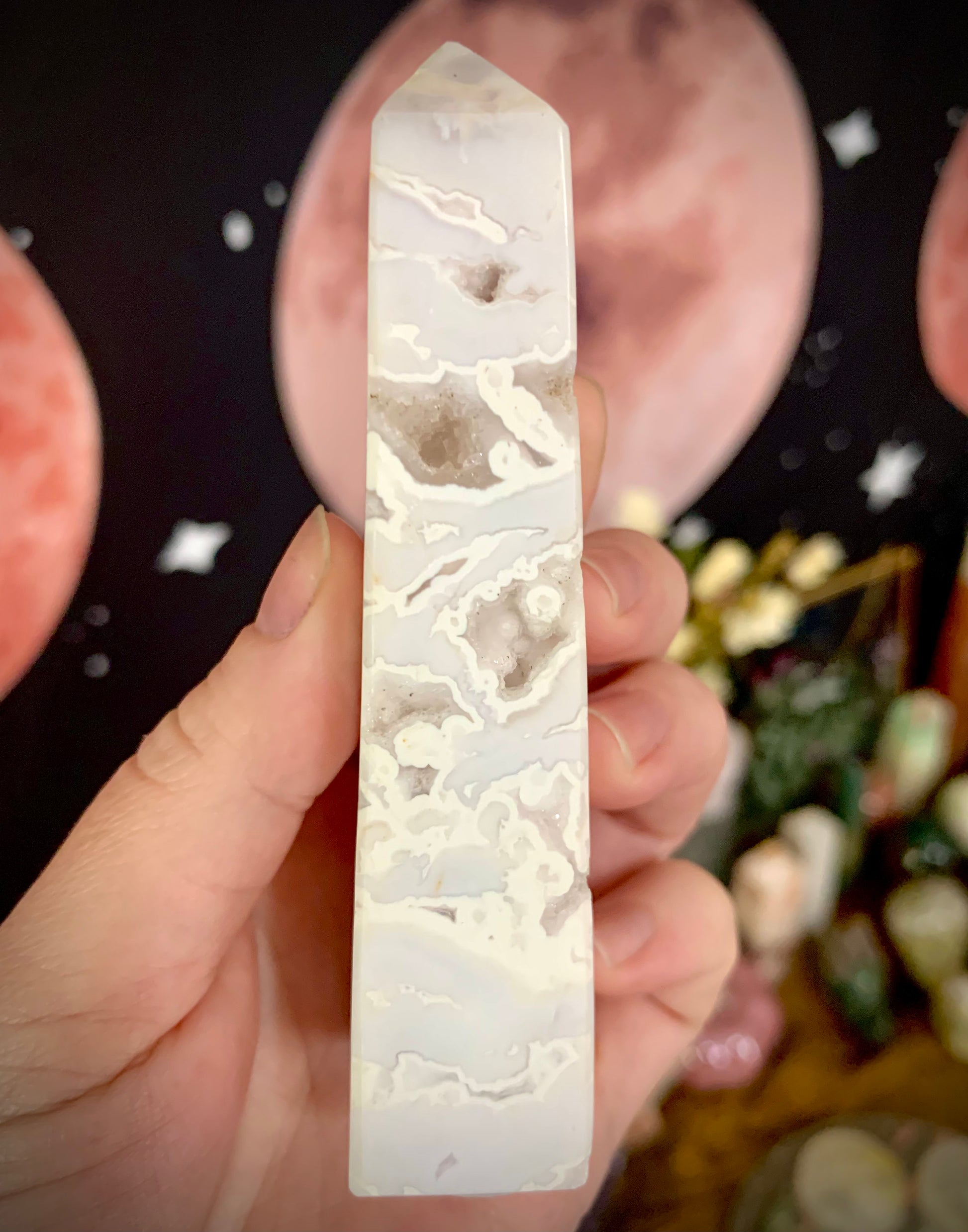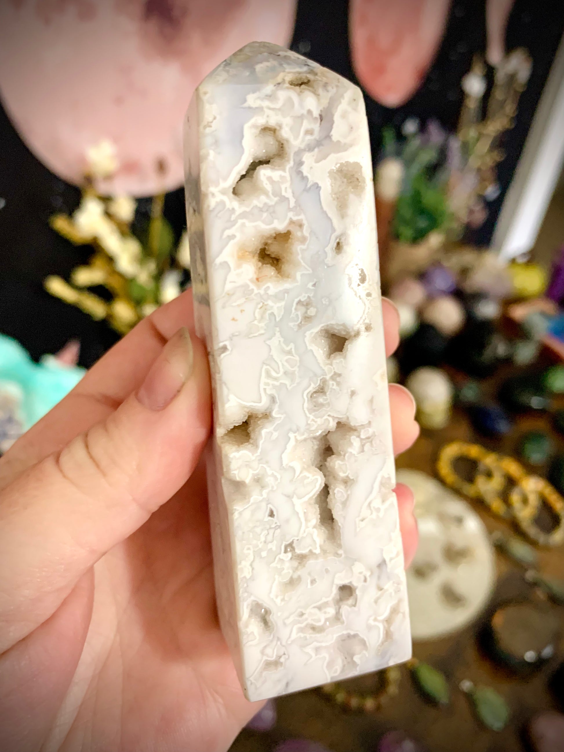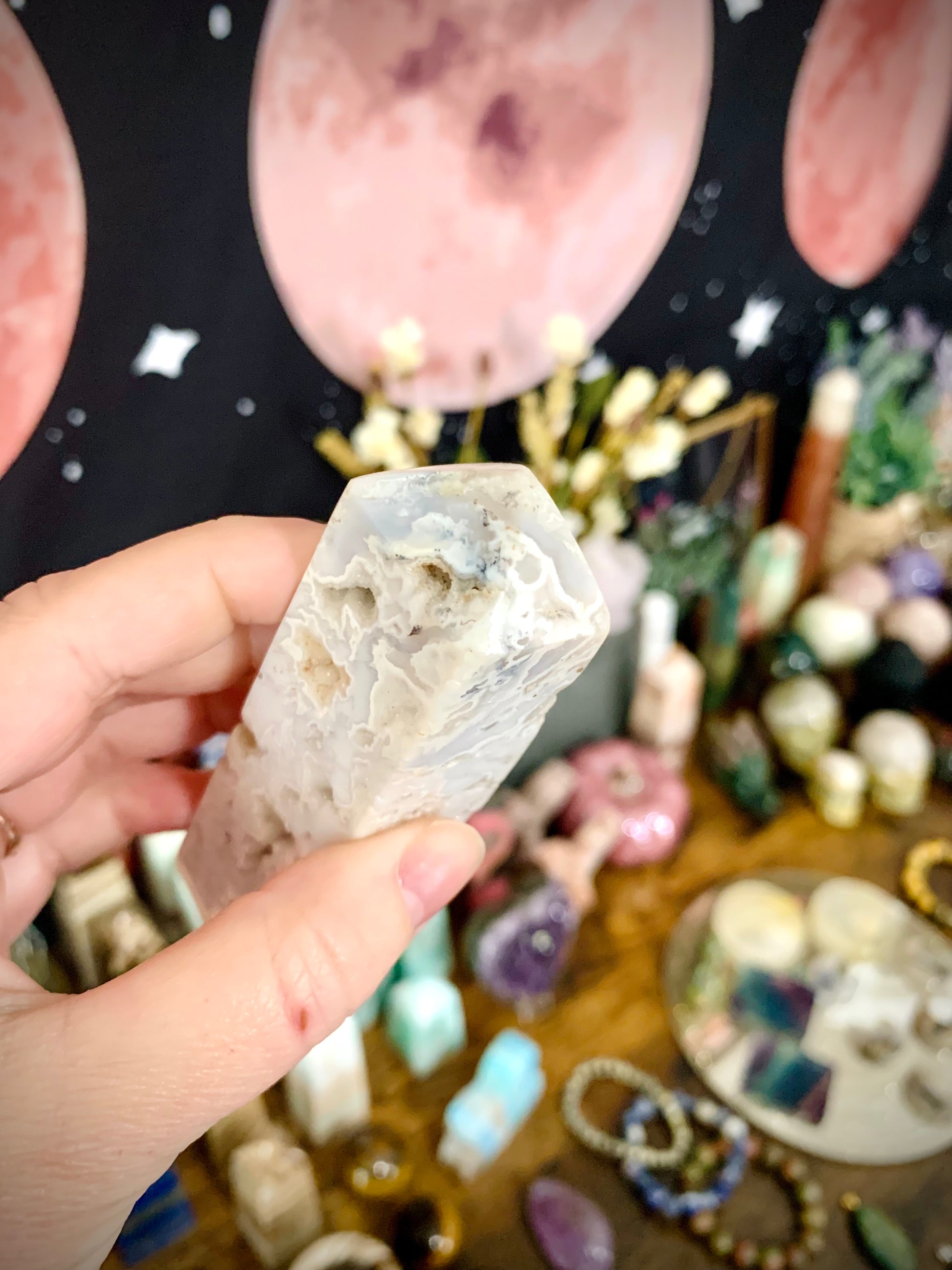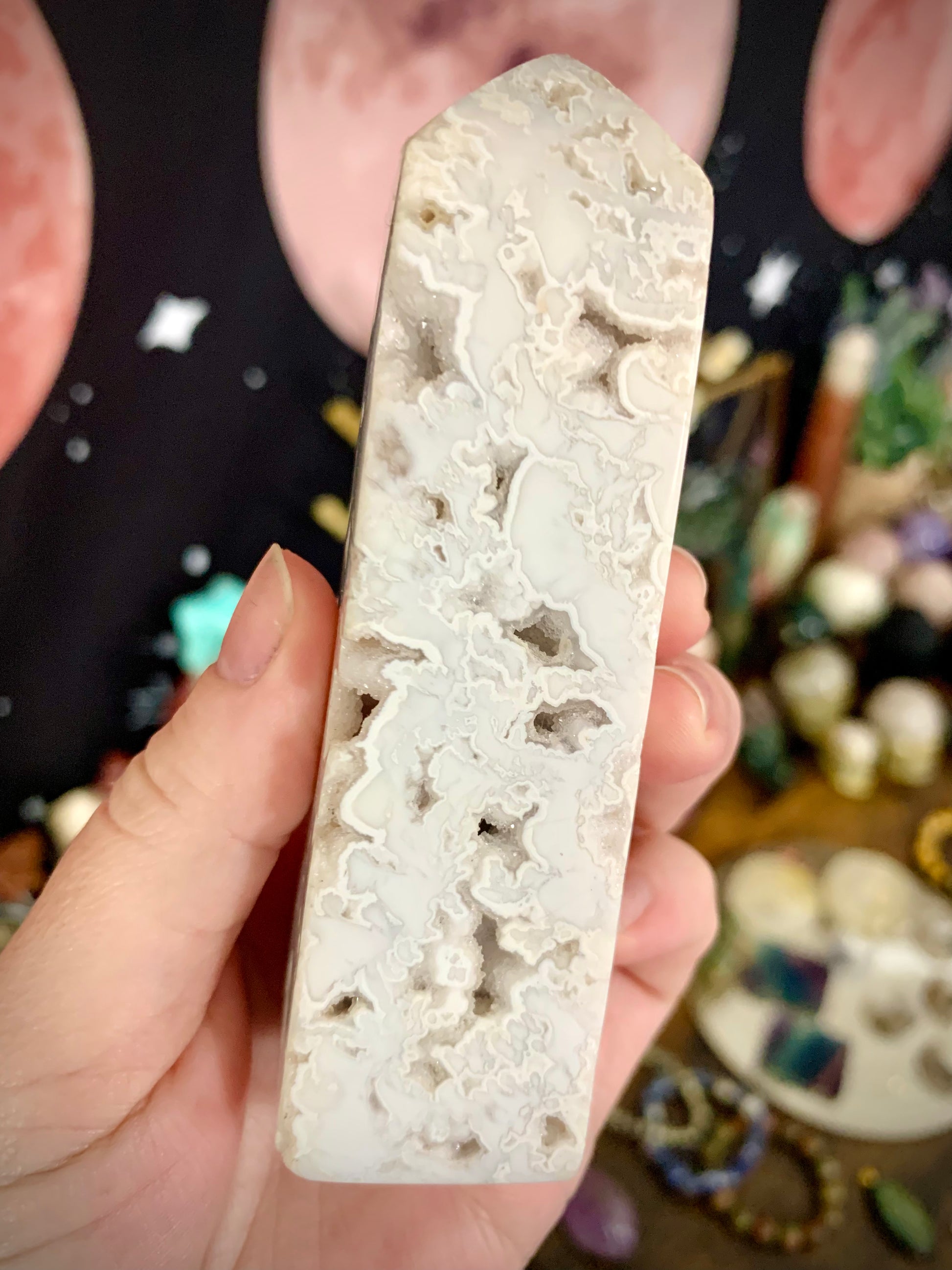 crazy lace agate, also known as mexican agate, is an ancient & powerful healing stone. it’s also known as “happy lace” or “the laughter stone.” this white variety is associated with the crown chakra & is very high vibe.